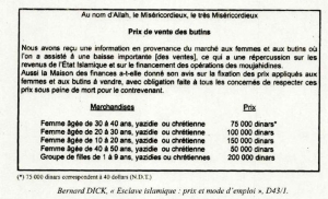 Cette surenchère de règles, cautionnées par les textes, s’est inévitablement accompagnée d’une immense « hypocrisie », poursuit l’enquêteur de la DGSI. Des esclaves étaient parfois vendues pour quelques heures, violées, puis revendues. Et ce sentiment de « pleine propriété » sur des êtres chosifiés a donné lieu à un déchaînement de cruauté à peine imaginable : « Certains djihadistes menaçaient de tuer les enfants esclaves si leur mère se refusait à eux. En 2016, 19 femmes yézidies ont été transportées dans une cage et brûlées vives à Mossoul, parce qu’elles avaient résisté à leur tortionnaire. »