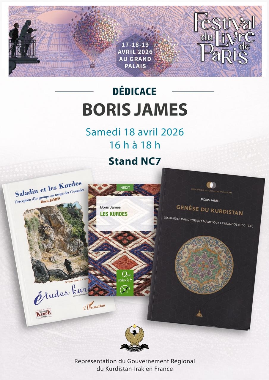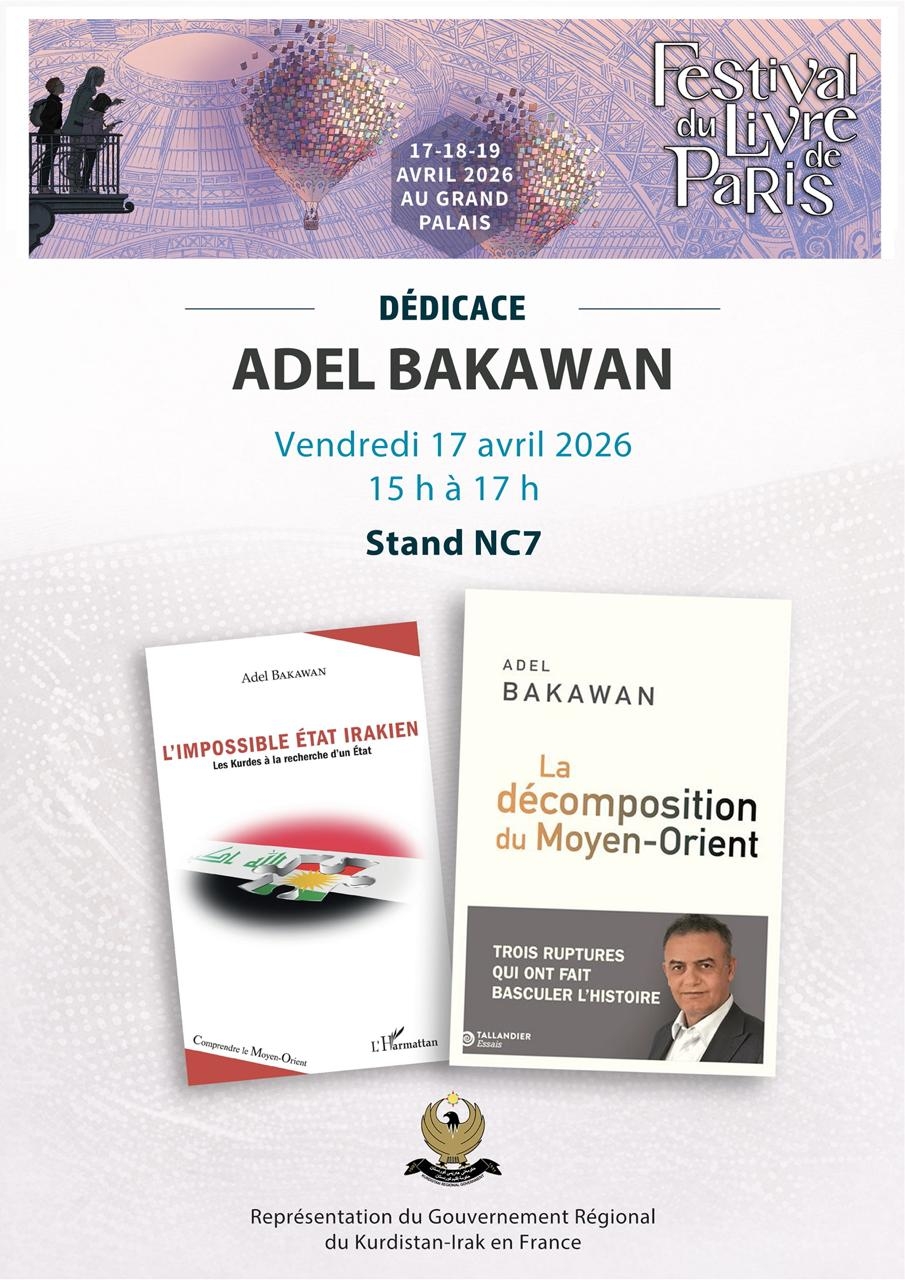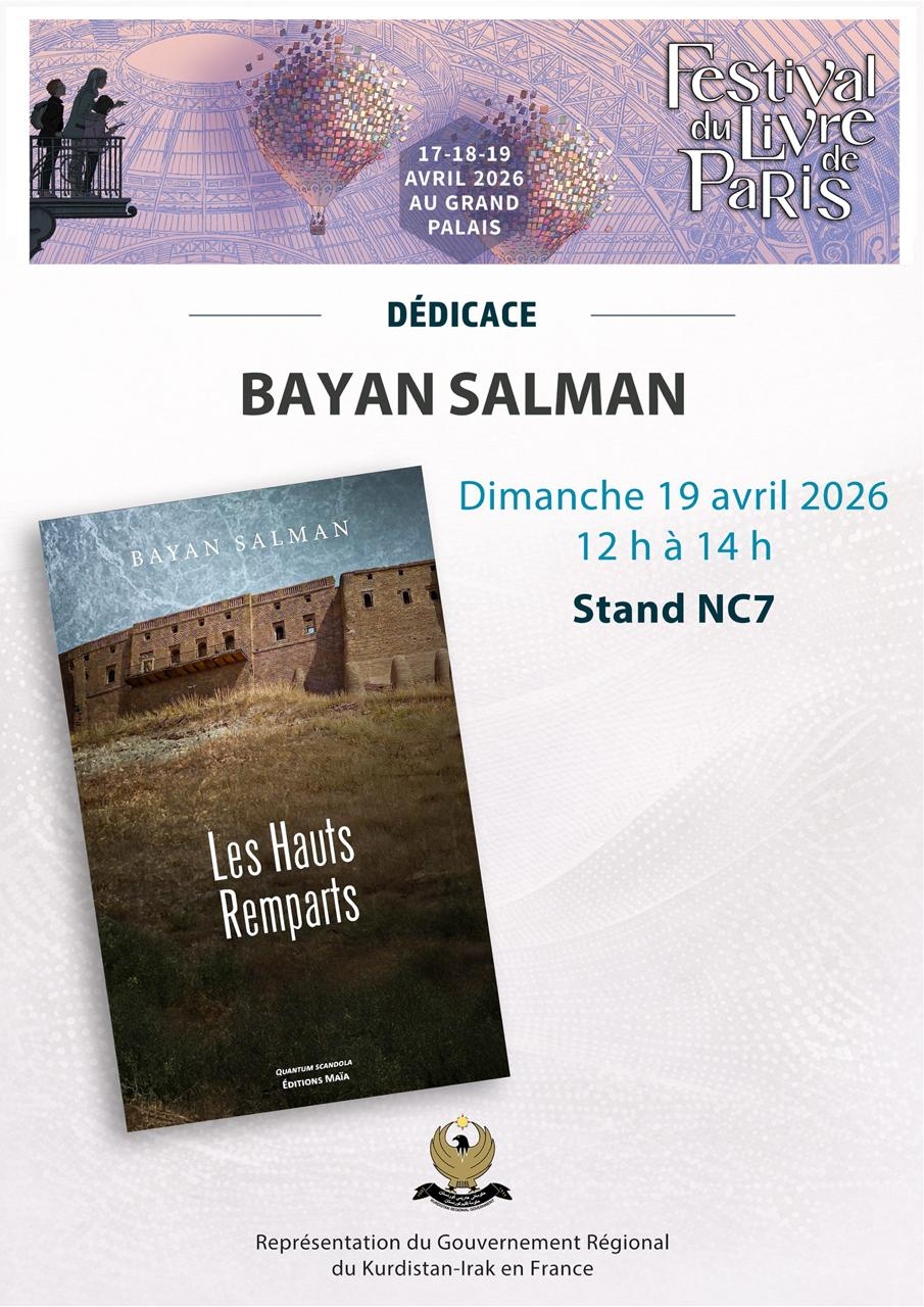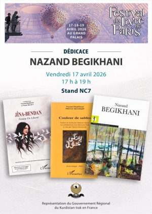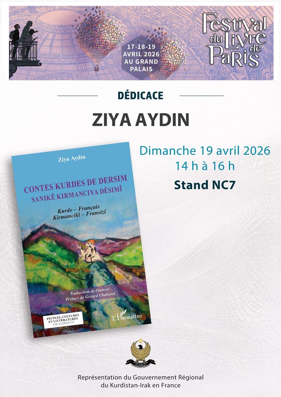 À l’occasion du Festival du Livre de Paris, qui se tiendra du 17 au 19 avril 2026 au Grand Palais, plusieurs auteurs seront présents pour des séances de dédicaces au stand du Gouvernement régional du Kurdistan en France (stand NC7).