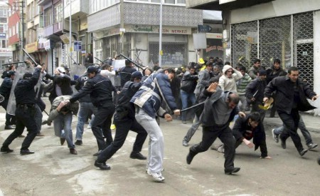 À Van, 60 manifestants et deux policiers ont été blessés après que les forces de sécurité ont tenté de disperser, au moyen de canons à eau et de gaz lacrymogènes, une foule de 10.000 Kurdes célébrant la nouvelle année et manifestant leur soutien au PKK.
