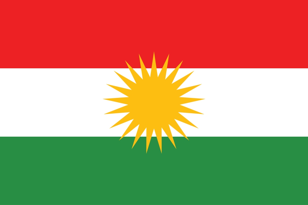 Le drapeau kurde est composé de bandes rouge, blanche et verte avec un soleil au milieu : le rouge fait référence au feu, élément fondateur de la civilisation et symbole sacré du zoroastrisme, religion préislamique des Kurdes ; le vert fait référence au renouveau de la nature et à l’espoir, le blanc à la pureté, et le soleil, vénéré encore dans plusieurs croyances kurdes, comme source de la vie et de l’énergie universelle.