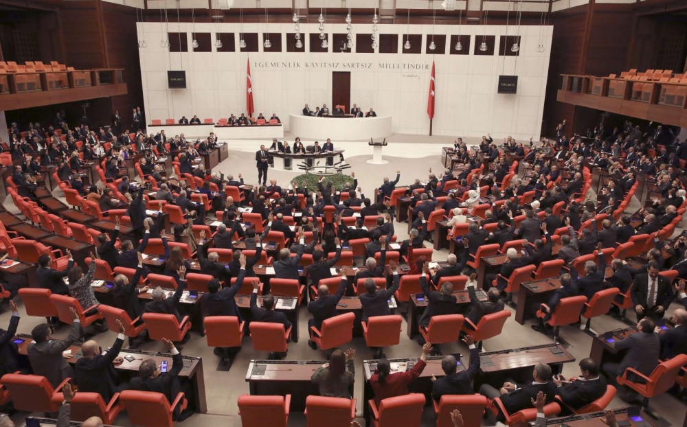 Malgré le rejet de l’opposition parlementaire – le CHP, Le Bon Parti (nationaliste) et le Parti démocratique des peuples (HDP, gauche, prokurde) –, la motion est passée haut la main, car le Parti de la justice et du développement (AKP, islamo-conservateur) et son allié du Parti de l’action nationaliste (MHP) sont majoritaires au Parlement.